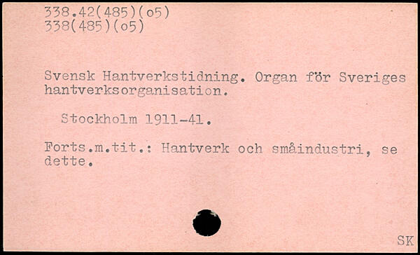 Svensk Hantverks tidning. Organ f.ör Sveriges hantverks organisation.