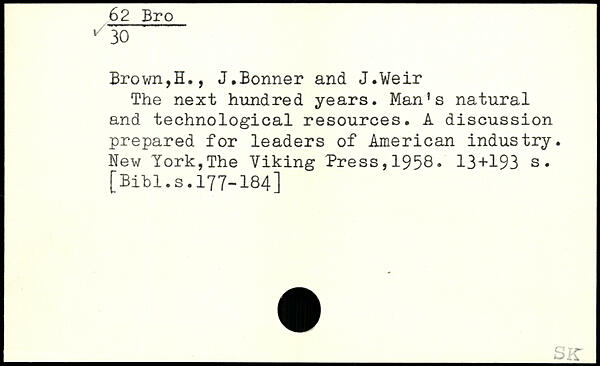 The next hundred years. Man's natural and technological resources. A discussion prepared for leaders of American industry.