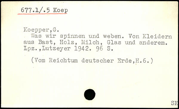 Was wir spinnen und weben. Von Kleidern aus Bast, Holz, Milch, Glas und anderem. Lpz.,Lutzeyer 1942.