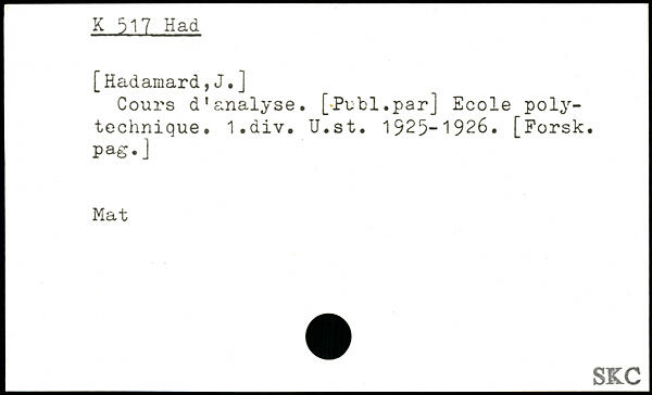 Cours d’analyse. [Publ.par] Ecole polytechnique. I.div. U.st. 1925-1926. [Forsk. pag. J Mat