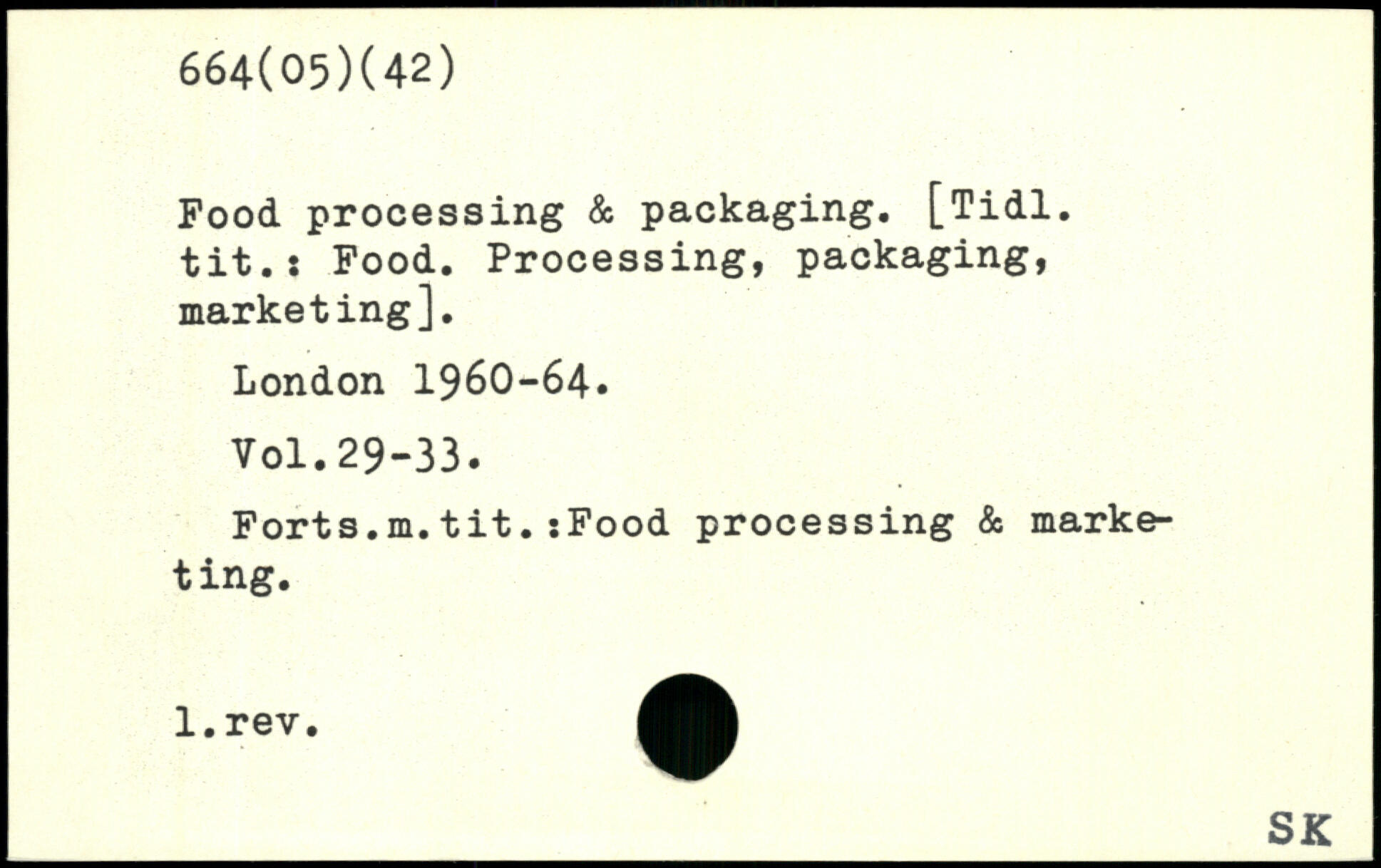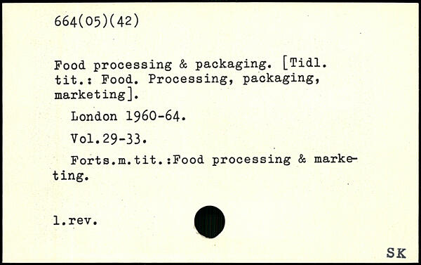 Pood processing & packaging. [Tidl. tit.s Food. Processing, packaging, marketing].