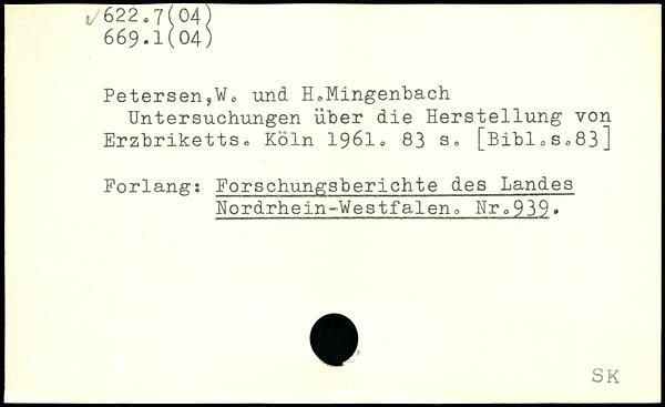 Untersuchungen über die Herstellung von ErzbrikettSa
