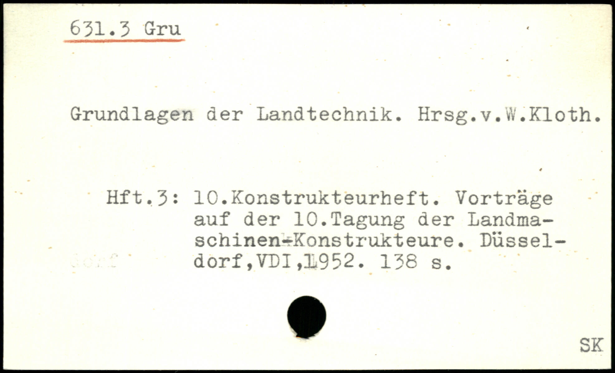 Grundlagen der Landtechnik. Hrsg.v.W.Kloth. Hft,3: 10.Konstrukteurheft. Vorträge auf der 10.Tagung der Landma-schinen^Konstrukteure. Düsseldorf tVDI,L952.