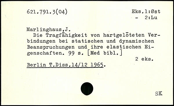 Die Tragfähigkeit von hartgeloteten Verbindungen bei statischen und dynamischen Beanspruchungen und ihre elastischen Eigenschaften.