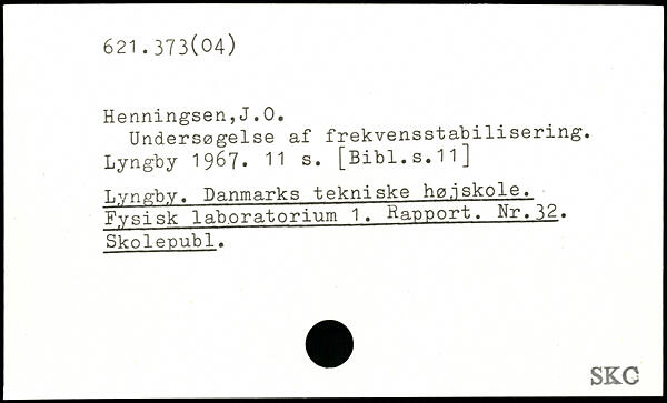 Undersøgels© af frekvenss'tabilisei’ing. Lyngby 19^7