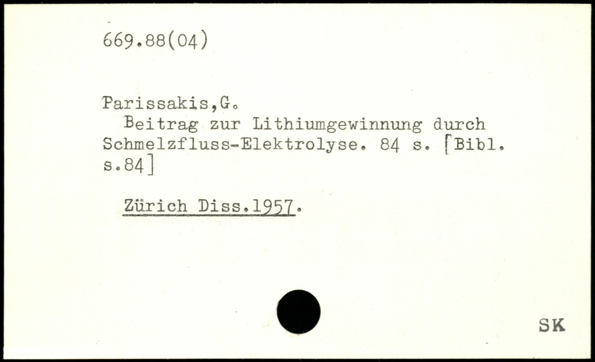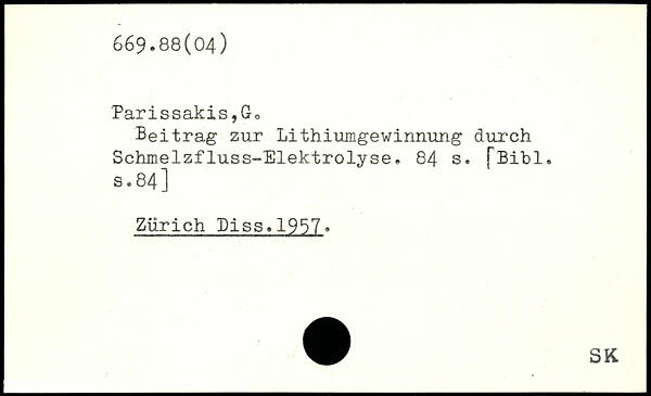 Parissakis,Go ] Beitrag zur Lithiumgewinnung durch Schmelzfluss-Elektrolyse.