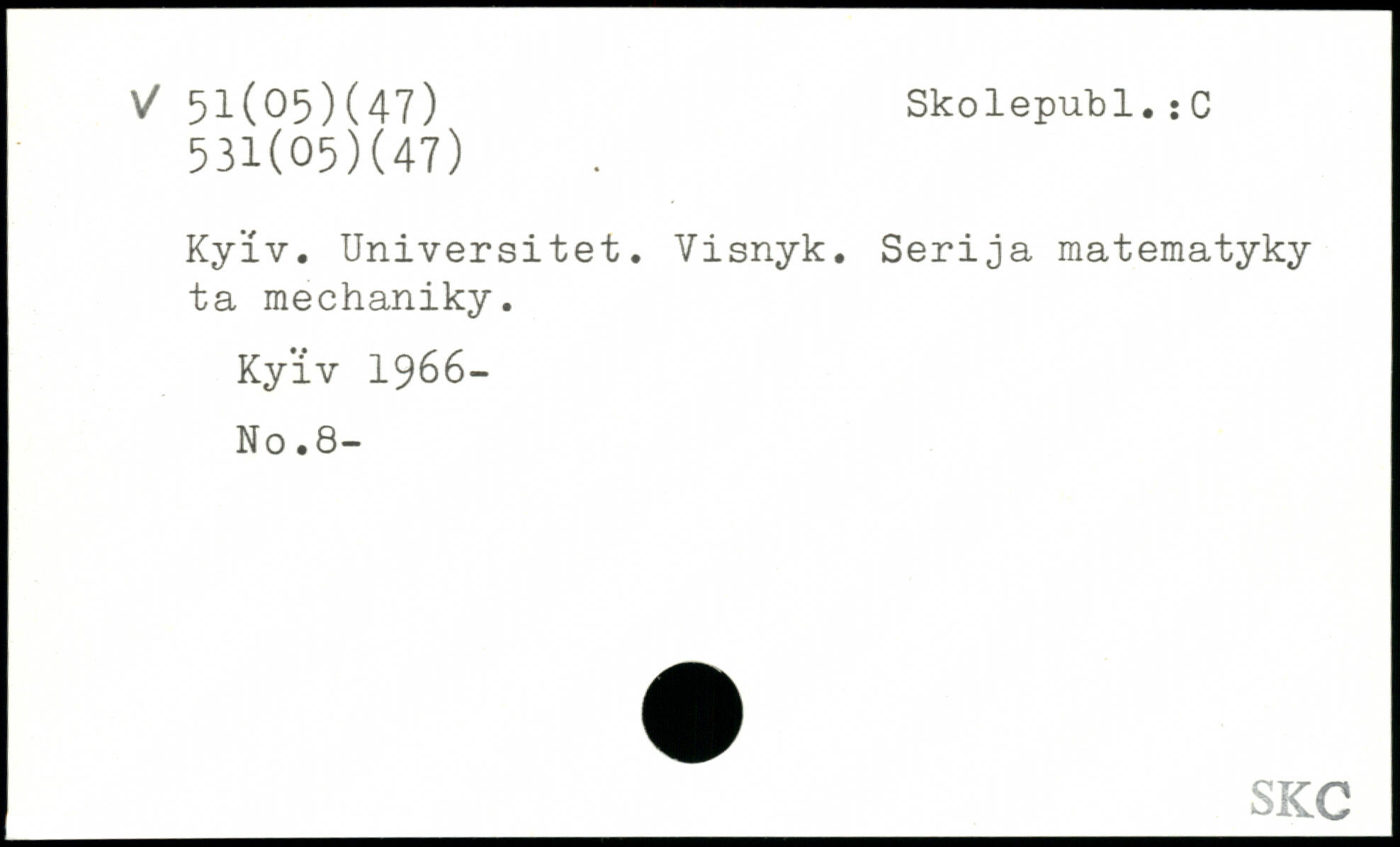 Kyïv. Universitet. Visnyk. Serija raatematyky ta mechaniky. Kyïv 1966- No.8-
