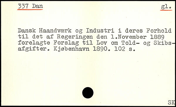 Dansk Haandværk og Industri i deres Forhold til det af Regeringen den 1.November 1889 forelagte Forslag til Lov om fold- og Skibsafgifter. Kjøbenhavn 1890.