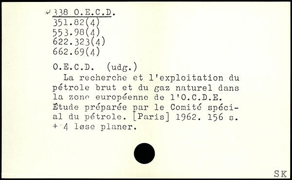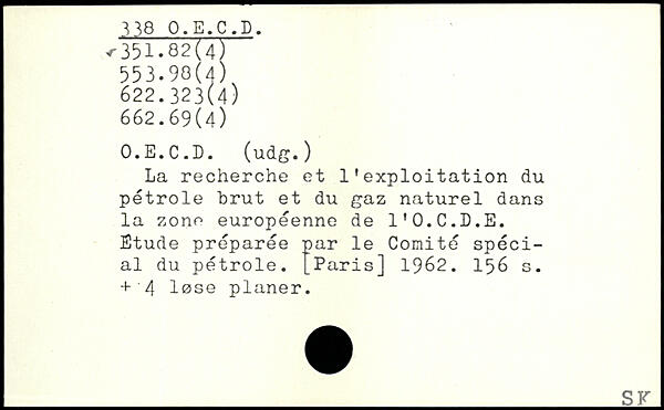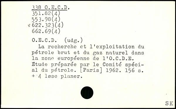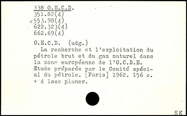 La recherche et l’exploitation du pétrole brut et du gaz naturel dans la zone européenne de l’O.C.D.E. Etude préparée par le Comité spécial du pétrole.