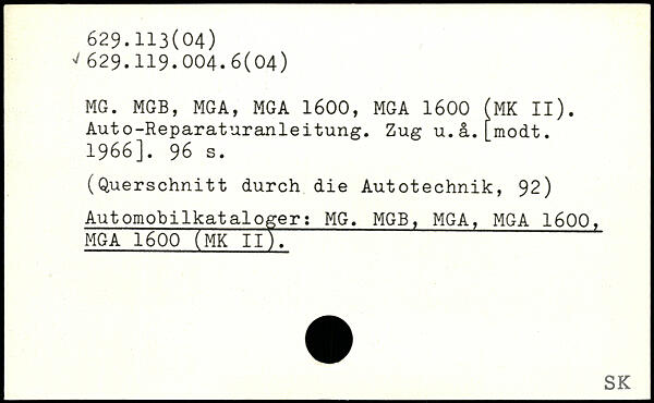 MG. MGB, MGA, MGA 1600, MGA 1600 (MK II). Auto-Reparaturanleitung. Zug u.&.[modt. 1966].
