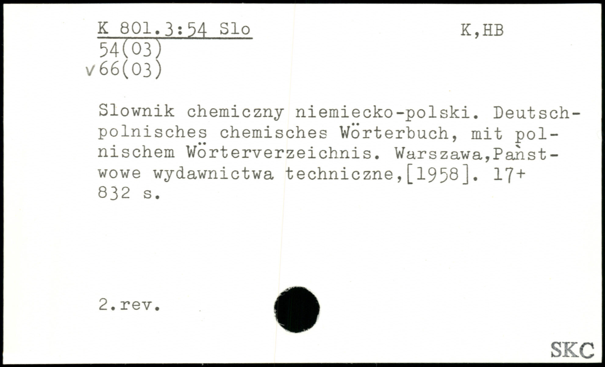 Slownik chemiczny niemiecko-polski. Deutschpolnisches chemisches Wörterbuch, mit polnischem Wörterverzeichnis.