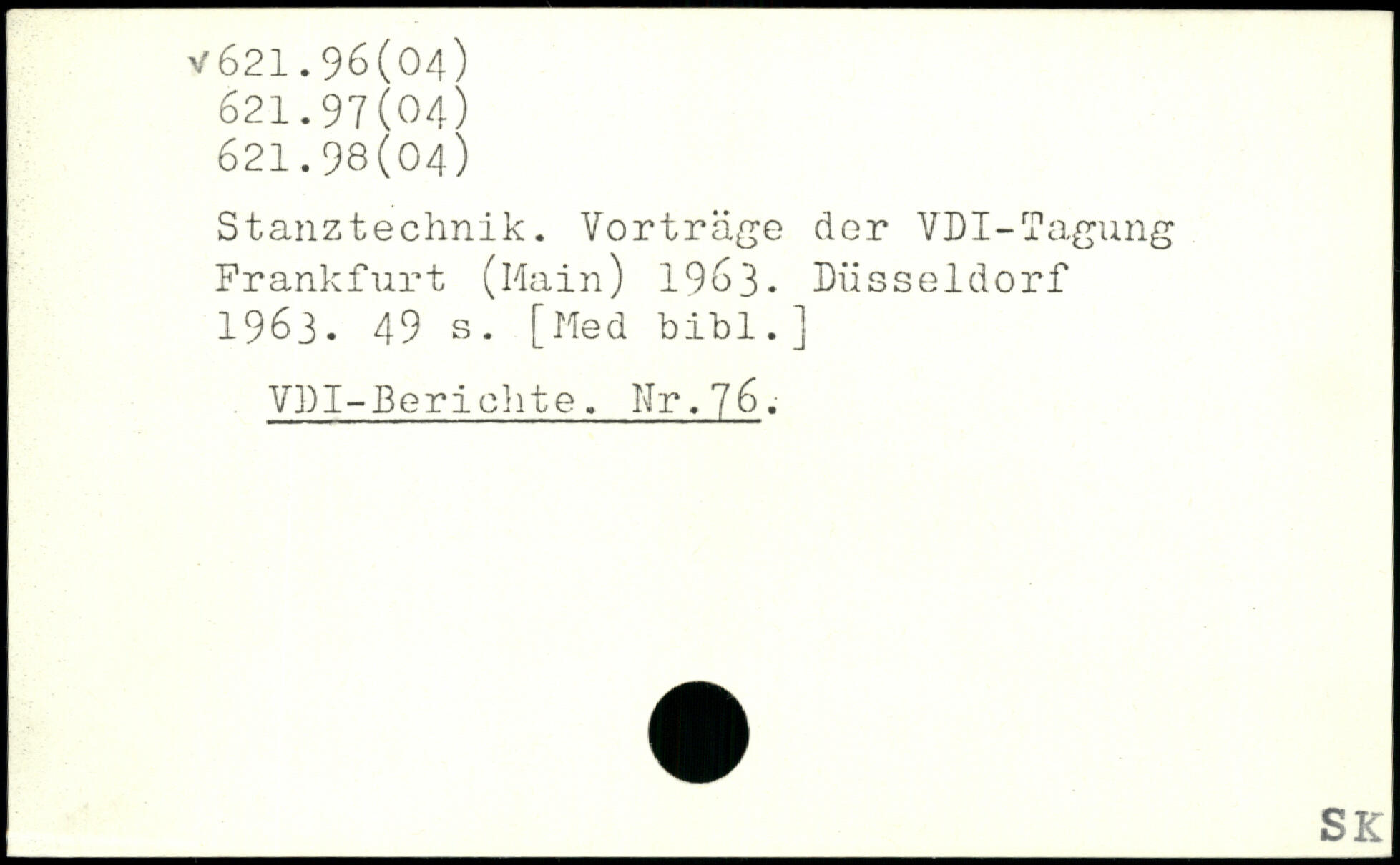 Stanztechnik. Vorträge der VDI-Tagung Frankfurt (Main) 1963. Düsseldorf 1963.