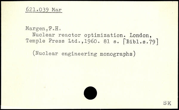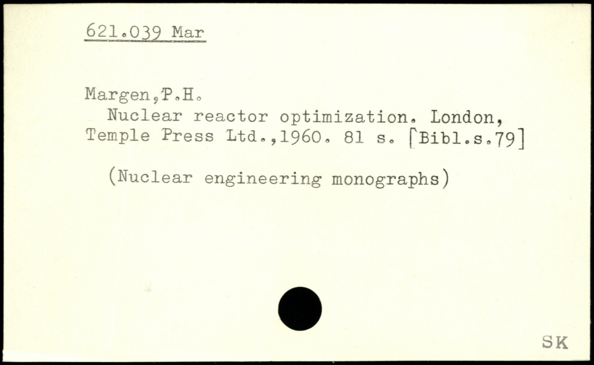 Margen?P,Ho Nuclear reactor optimization, London, Temple Press Ltd,,1960