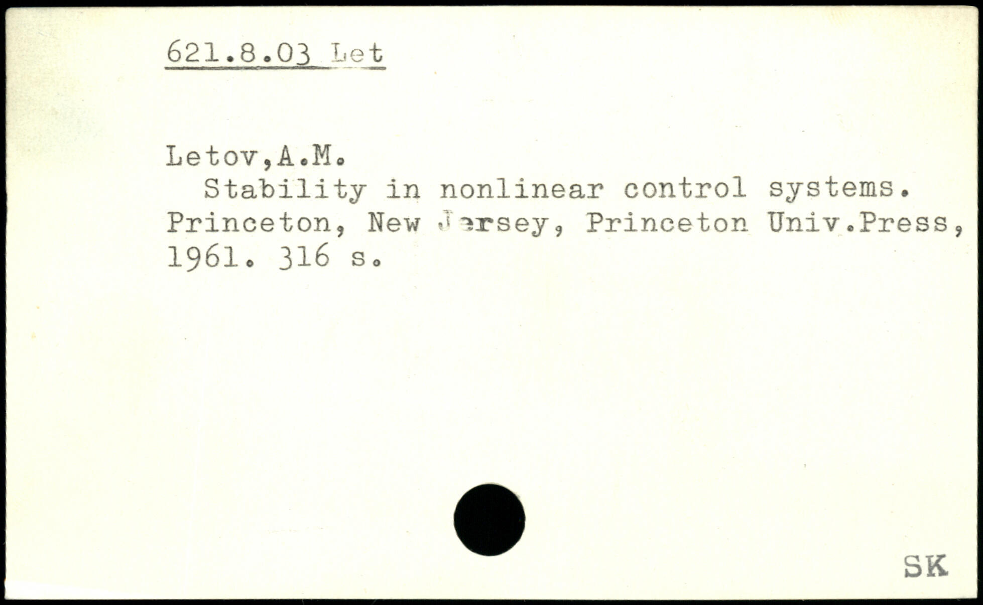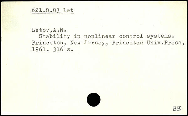 Stability in nonlinear control systems. Princeton, New Jersey, Princeton Univ.Press, 1961.