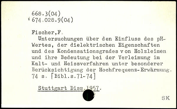 Untersuchungen über den Einfluss des pH-Wertes, der dielektrischen Eigenschaften und des Kondensationsgrades von Holzleimen und ihre Bedeutung bei der Verleimung im Kalt- und Heissverfahren unter besonderer Berücksichtigung der Hochfrequenz-Erwärmung,.