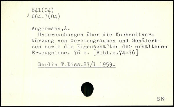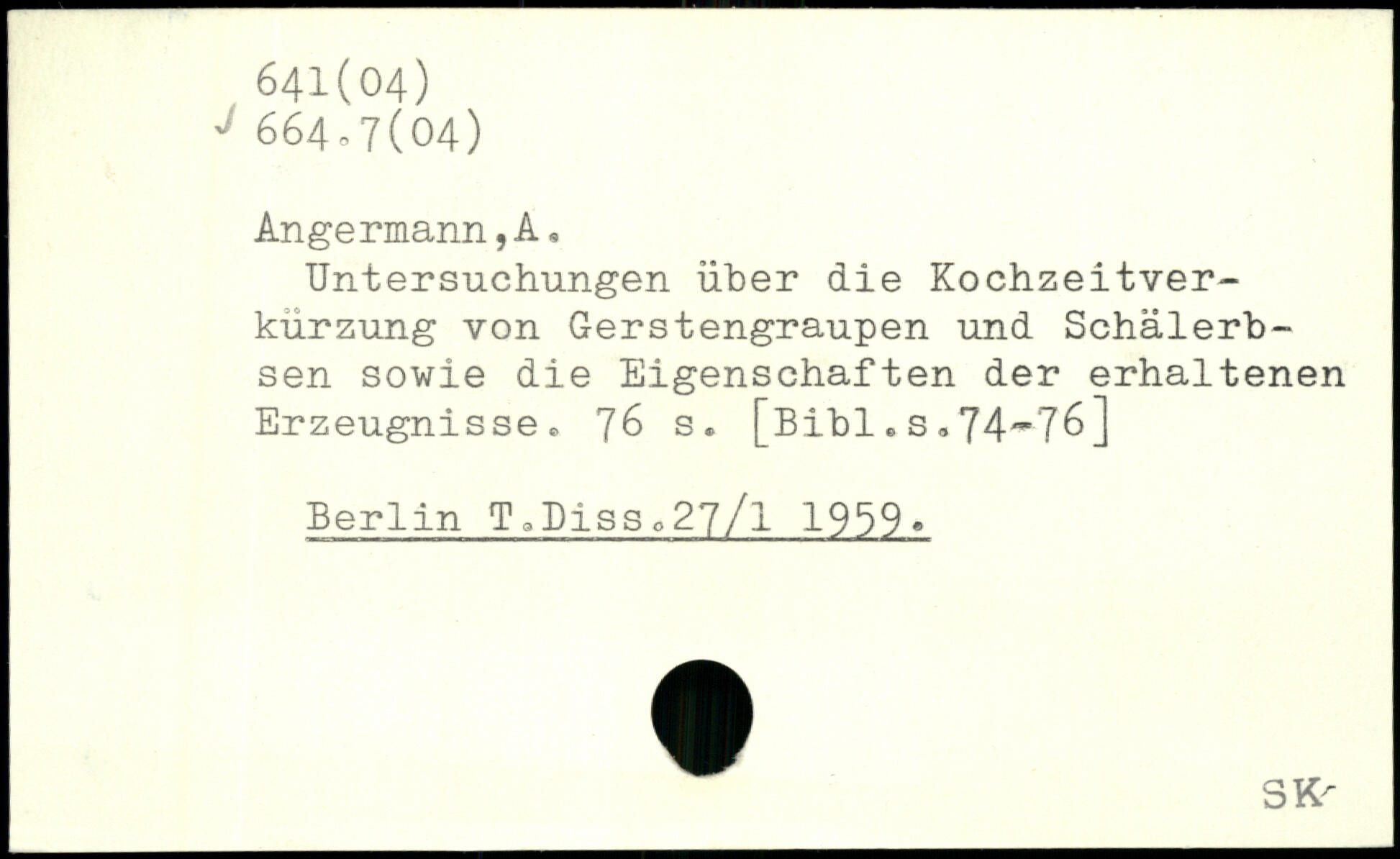 Untersuchungen über die Kochzeitverkürzung von Gerstengraupen und Schälerbsen sowie die Eigenschaften der erhaltenen Erzeugnisse..