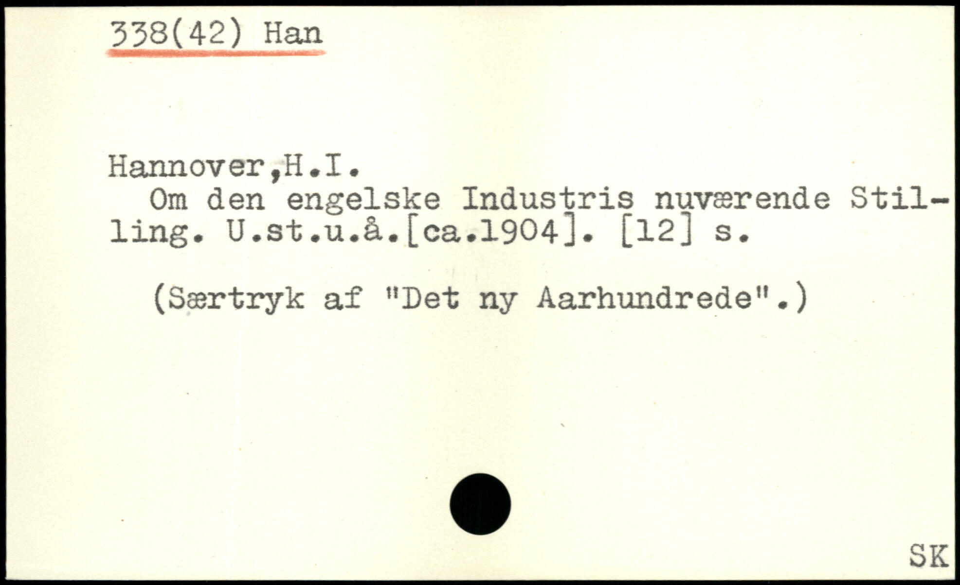 Om den engelske Industris nuværende St1111ng. U.st.u.å.[ca.1904]. [12] s. (Særtryk af "Det ny Aarhundrede".) _SK