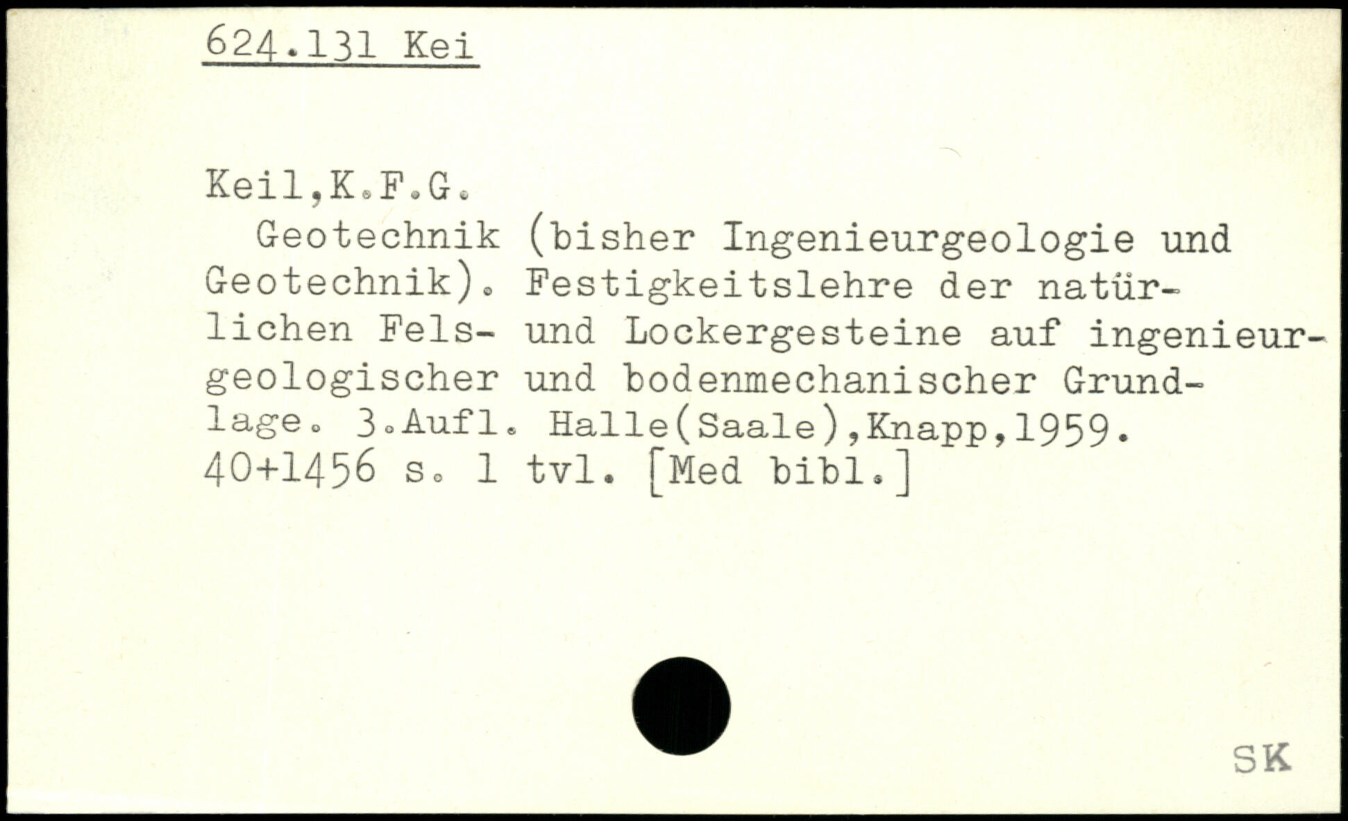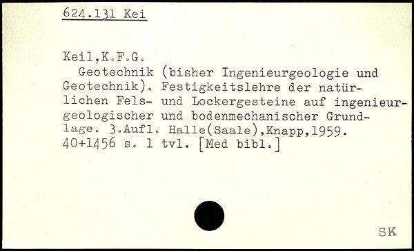 Geotechnik (bisher Ingenieurgeologie und Geotechnik)o Festigkeitslehre der natürlichen Fels- und Lockergesteine auf ingenieurgeologischer und bodenmechanischer Grundlage,, 3 oAuf1,, Halle(Saale),Knapp,1959.