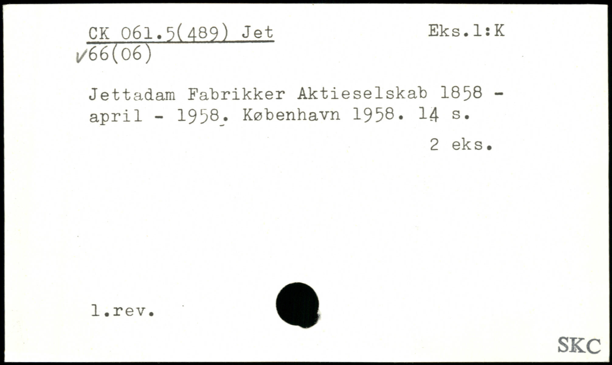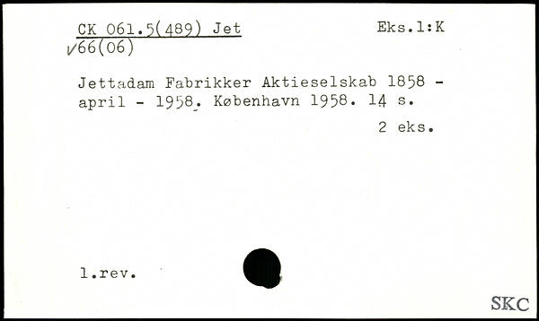Jettadara Fabrikker Aktieselskab 1858 -april - 1958