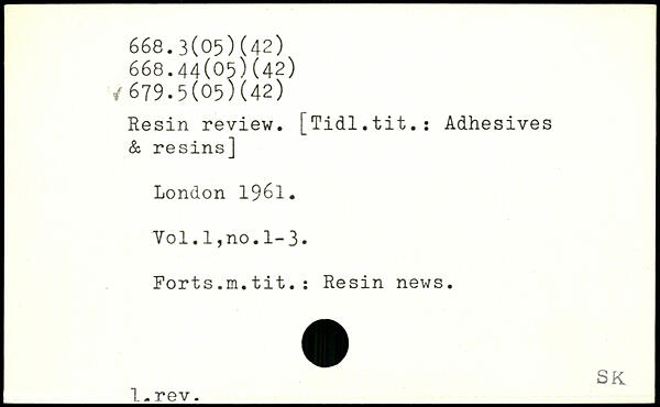 Resin review. [Tidl.tit.: Adhesives & resins]