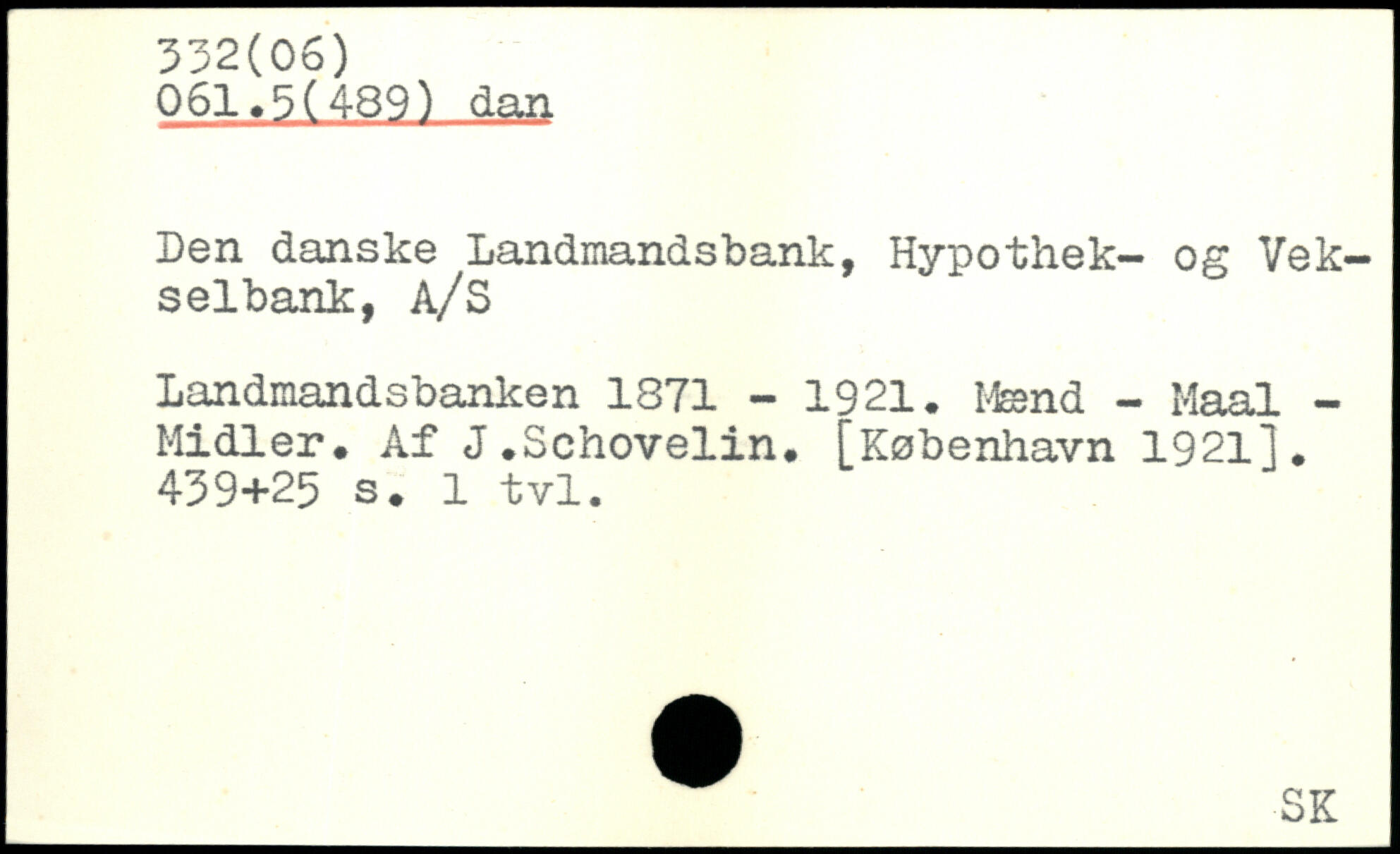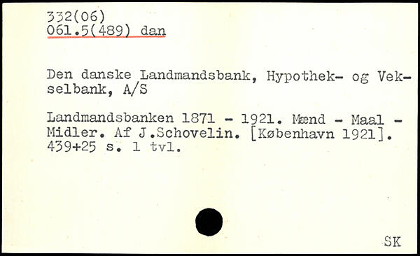 Den danske Landmandsbank, Hypothek- og Vekselbank, a/s Landmandsbanken 1871 - 1921. Hænd - Maal -Midler. Af J.Schovelin.