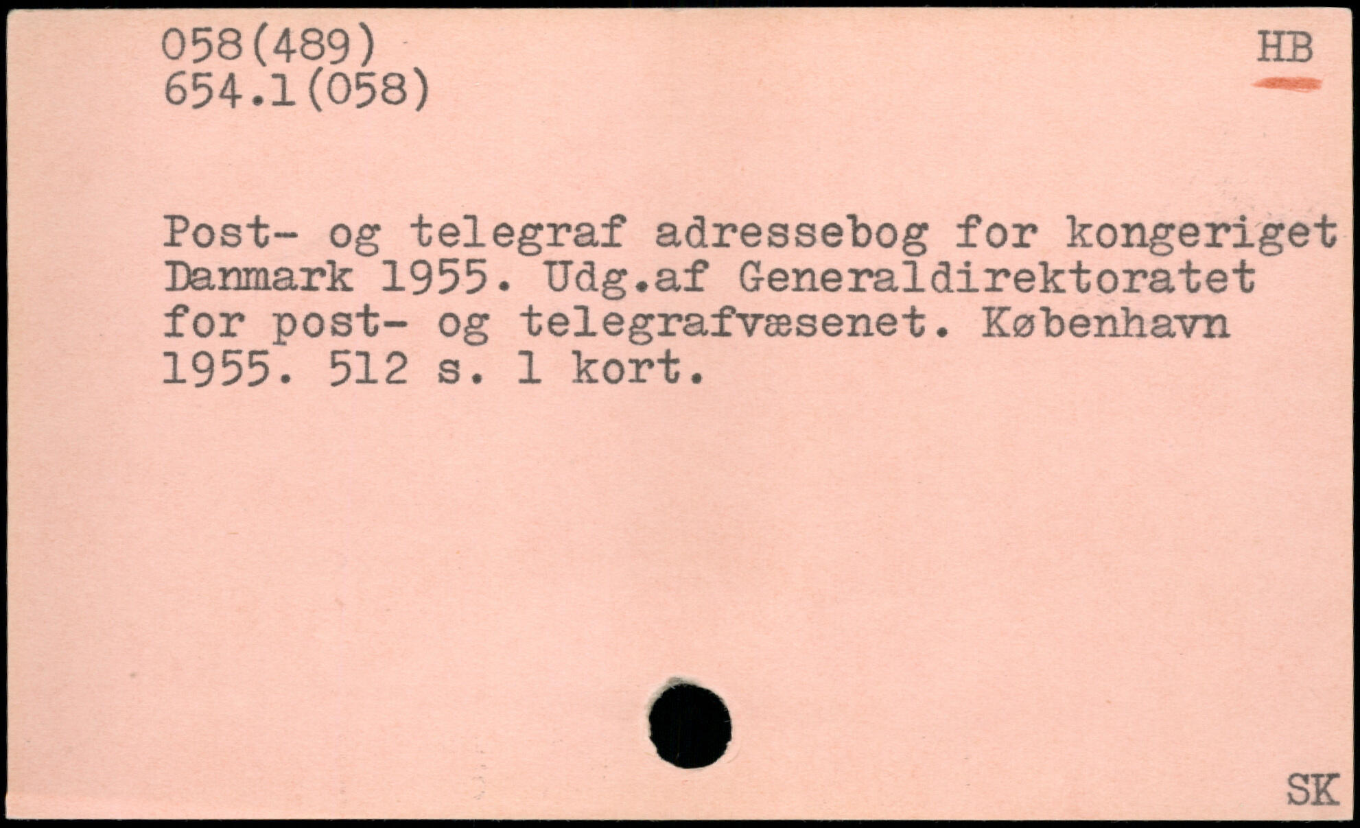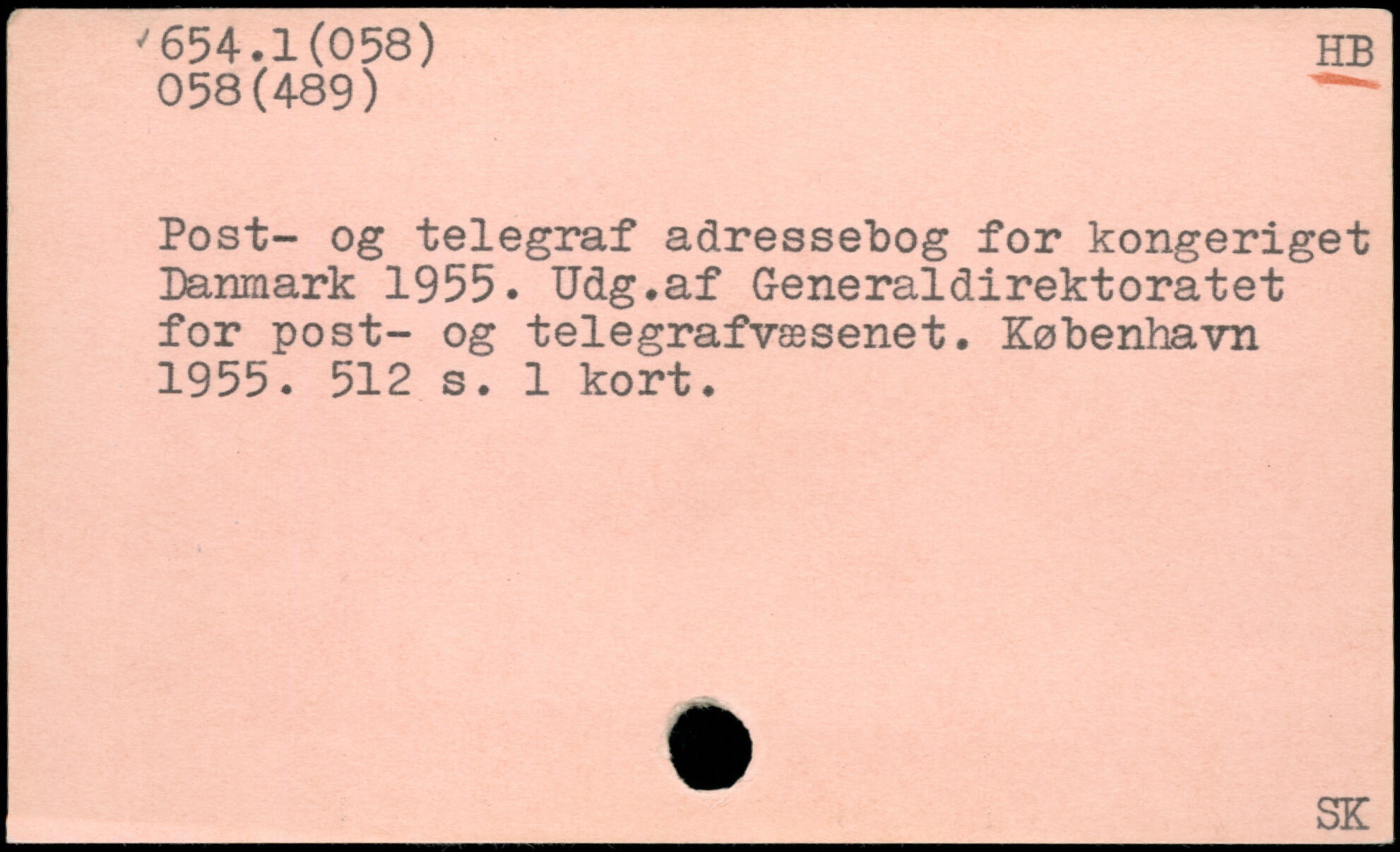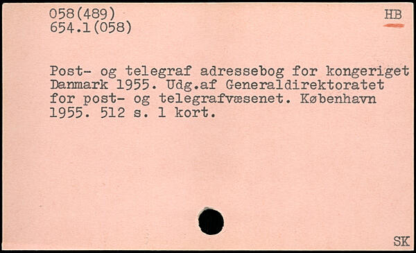 Post- og telegraf adressebog for kongeriget Danmark 1955. Udg.af Generaldirektoratet for post- og telegrafvæsenet.