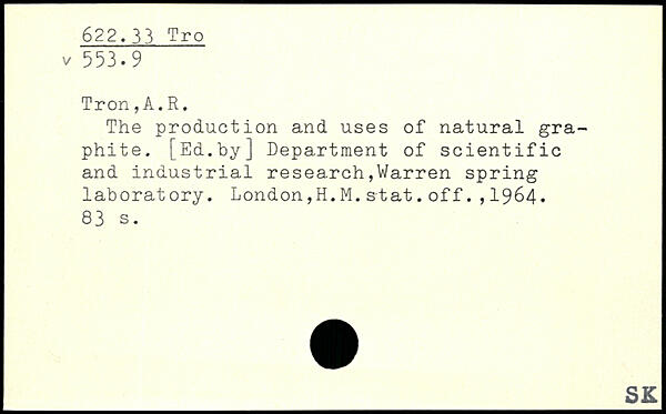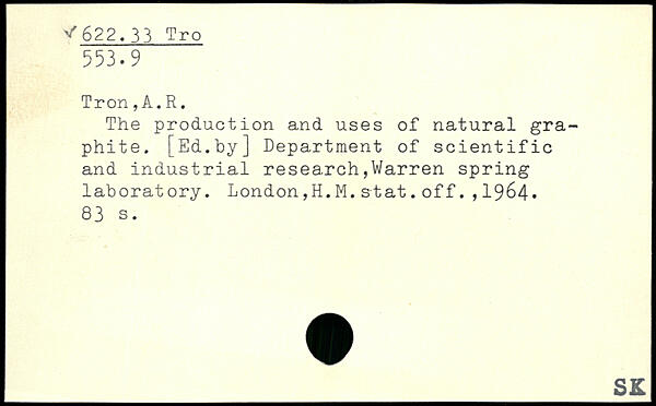 The production and uses of natural graphite. [Ed.by] Department of scientific and industrial research,Warren spring laboratory. London,H.M.stat.off.,1964.