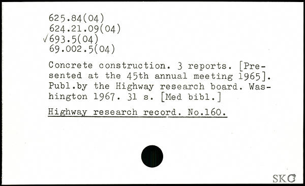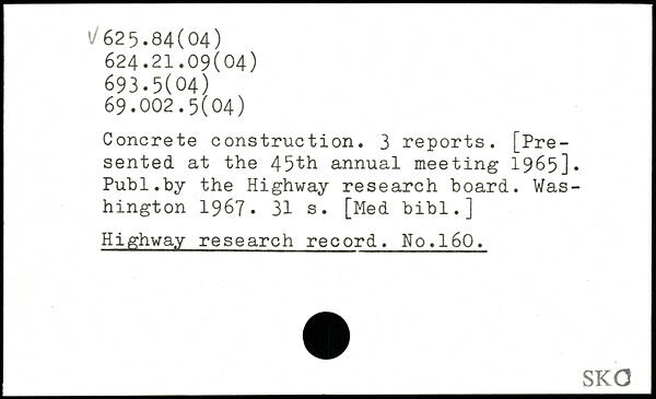 Concrete construction. 3 reports. [Presented at the 45th annual meeting 1965].