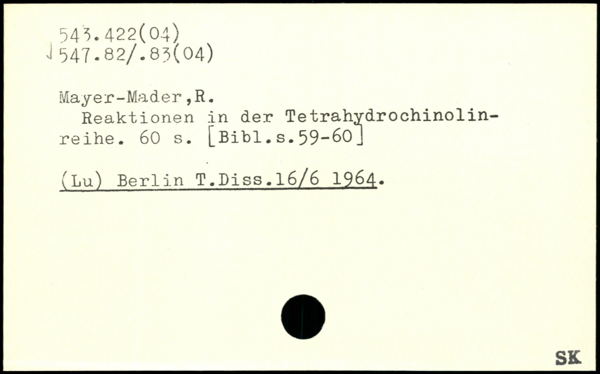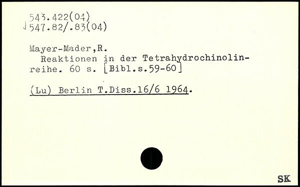 Reaktionen in der Tetrahydrochinolin-reihe.