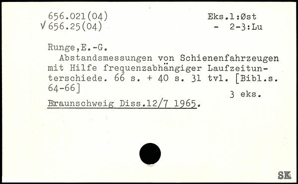 Abstandsmessungen von Schienenfahrzeugen mit Hilfe frequenzabhangiger Laufzeitun-terschiede.