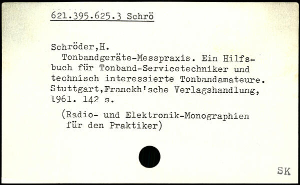 Tonbandgeräte-Messpraxis. Ein Hilfsbuch für Tonband-Servicetechniker und technisch interessierte Tonbandamateure.