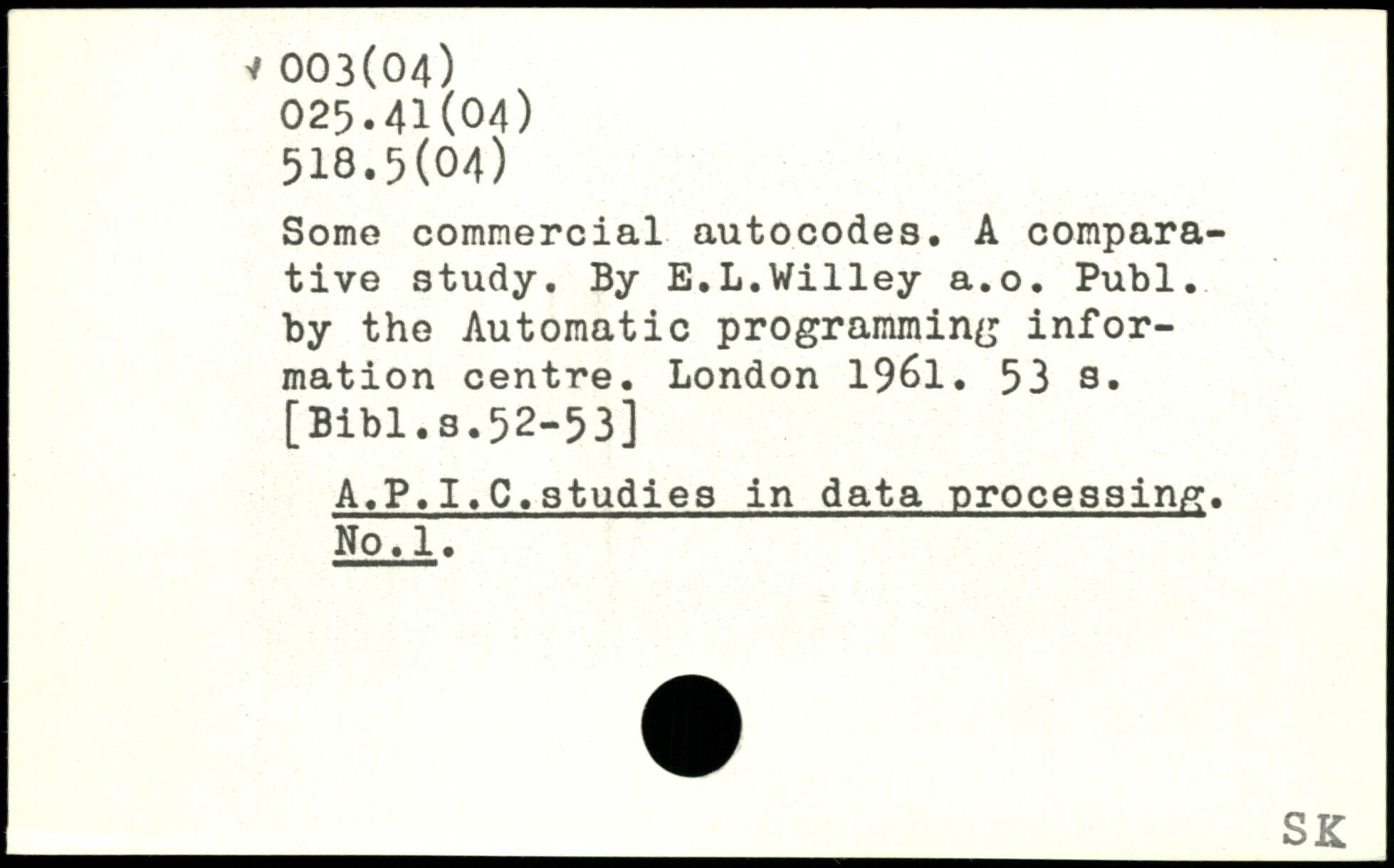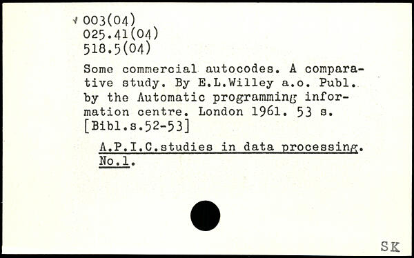 Some commercial autocodes. A comparative study. By E.L.Willey a.o.