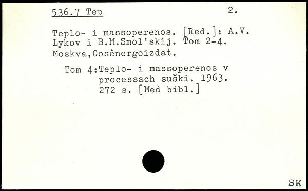 Teplo- i massoperenos. [Red.]: A.V. Lykov i B.M.Smol’skij. Tom 2-4. Moskva,Gosenergoizdat. Tom 4:Teplo- i massoperenos v processach suski. 1963-