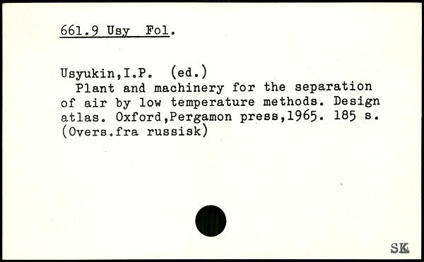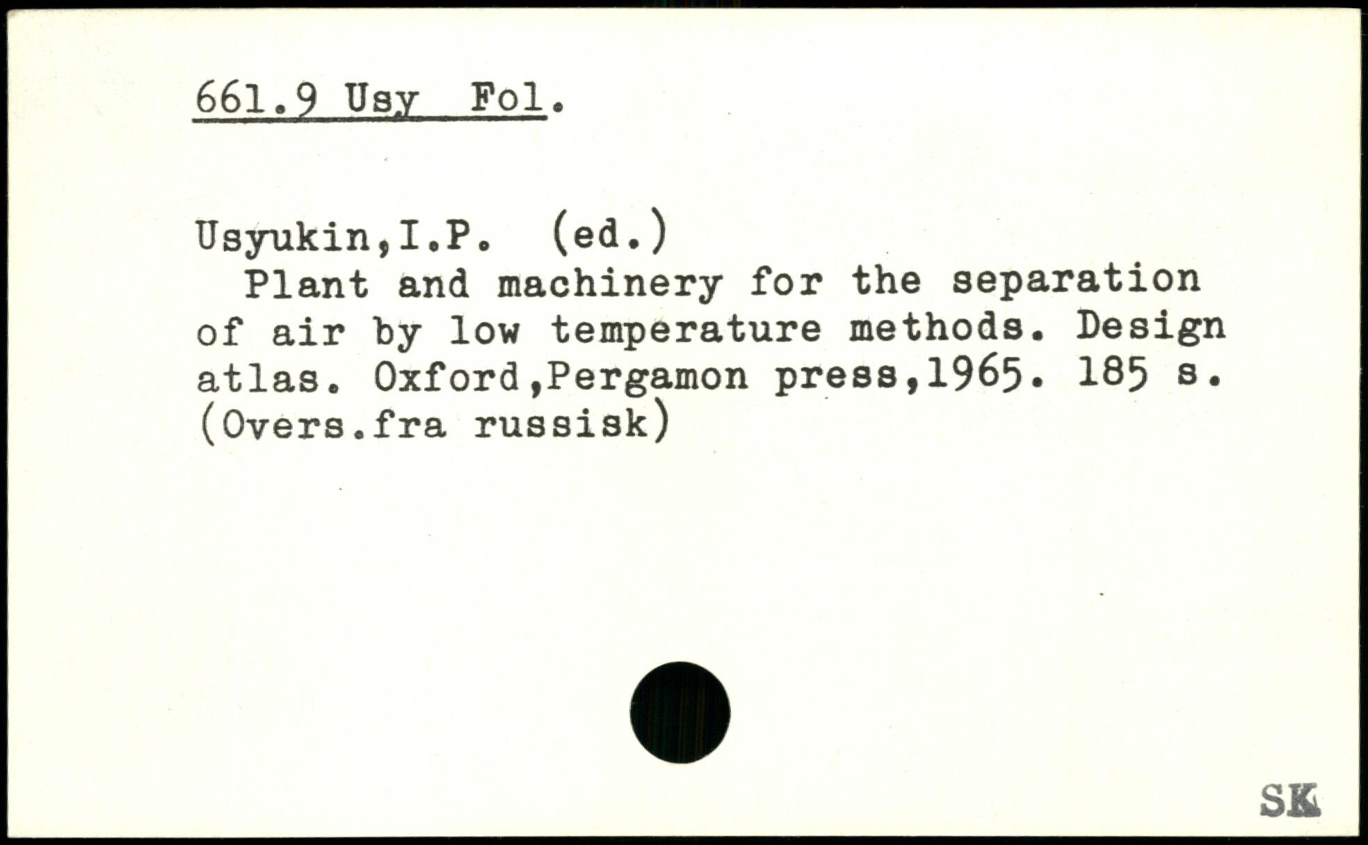 Plant and machinery for the separation of air by low temperature methods. Design atlas.