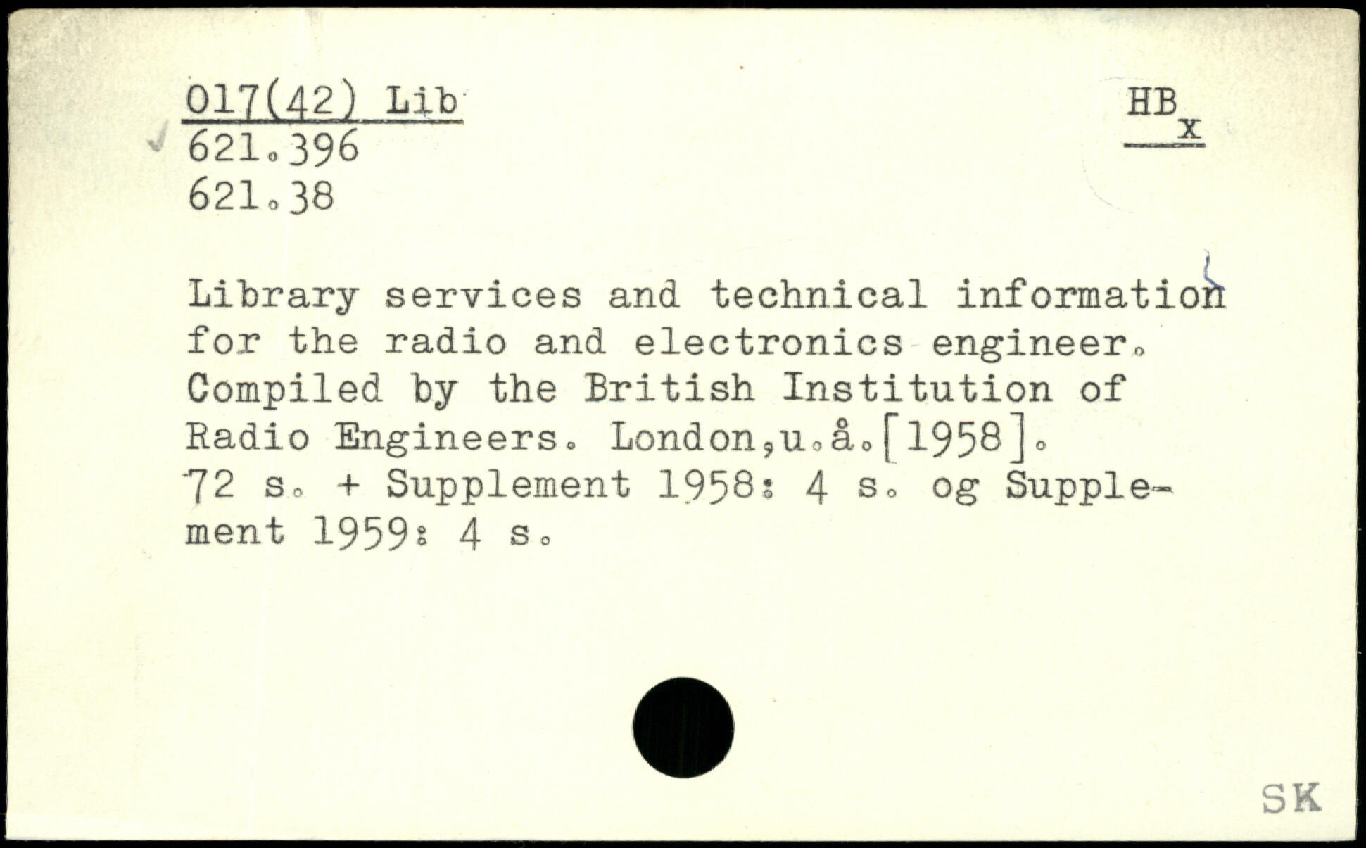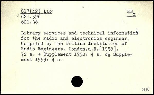 Library services and technical informatiofr for the radio and electronics engineer. Compiled by the British Institution of Radio Engineers, London9u,a, j~ 1958].