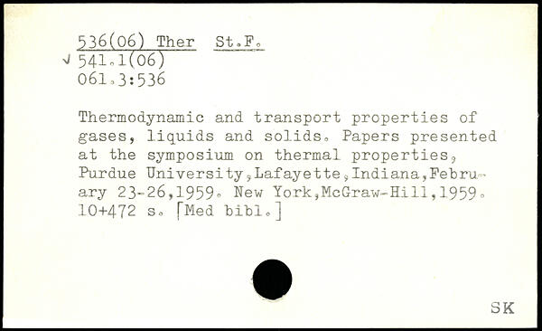 Thermodynamic and transport properties of gases, liquids and solids. Papers presented at the symposium on thermal properties, Purdue University,LafayettesIndiana,February 23-26,1959, New York,McGraw-Hil.1,1959.