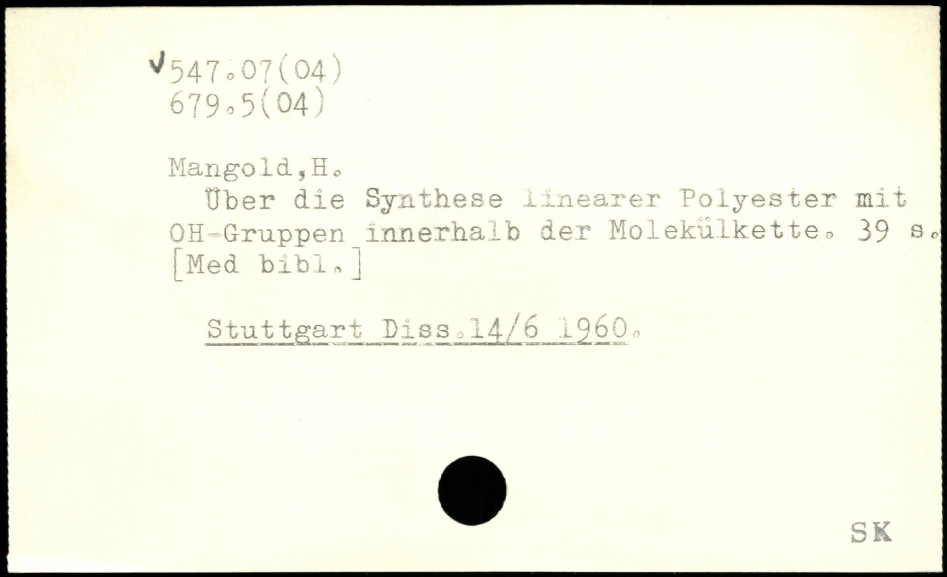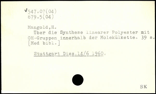 Uber die Synthese linearer Polyester mit OH-Gruppen innerhalb der Molekülkette