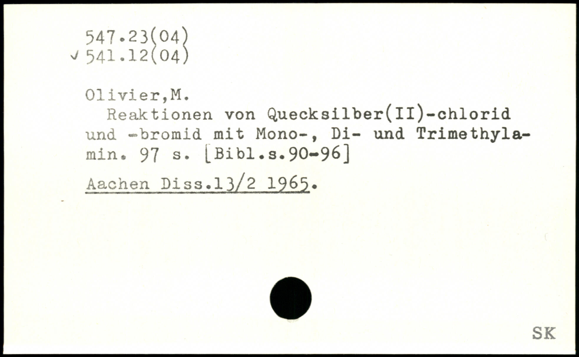 Reaktionen von Q,uecksilber( Il)-chlorid und “bromid mit Mono-, Di- und Trimethylamin.