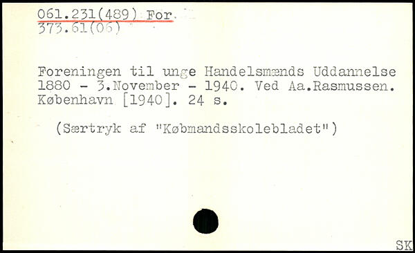 Poreningen til unge Handelsmands Uddannelse 1880 - 3.November - 1940. Ved Aa.Rasmussen.