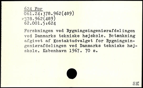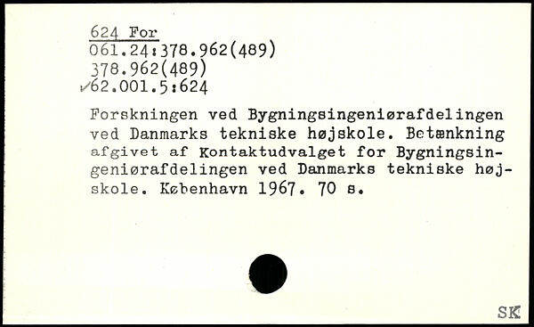 Forskningen ved Bygningsingeniørafdelingen ved Danmarks tekniske højskole. Betænkning afgivet af Kontaktudvalget for Bygningsin-geniøraf delingen ved Danmarks tekniske højskole.