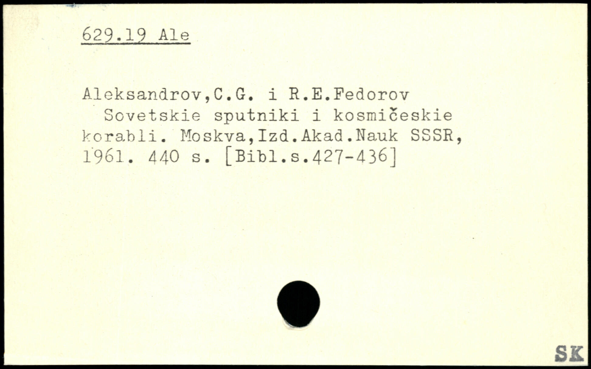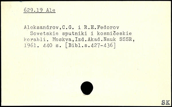 Aleksandrov,C.G. i R.E.Fedorov Sovetskie sputniki i kosmiceskie korabli. Moskva,Izd.Akad.Nauk SSSR, 1961.