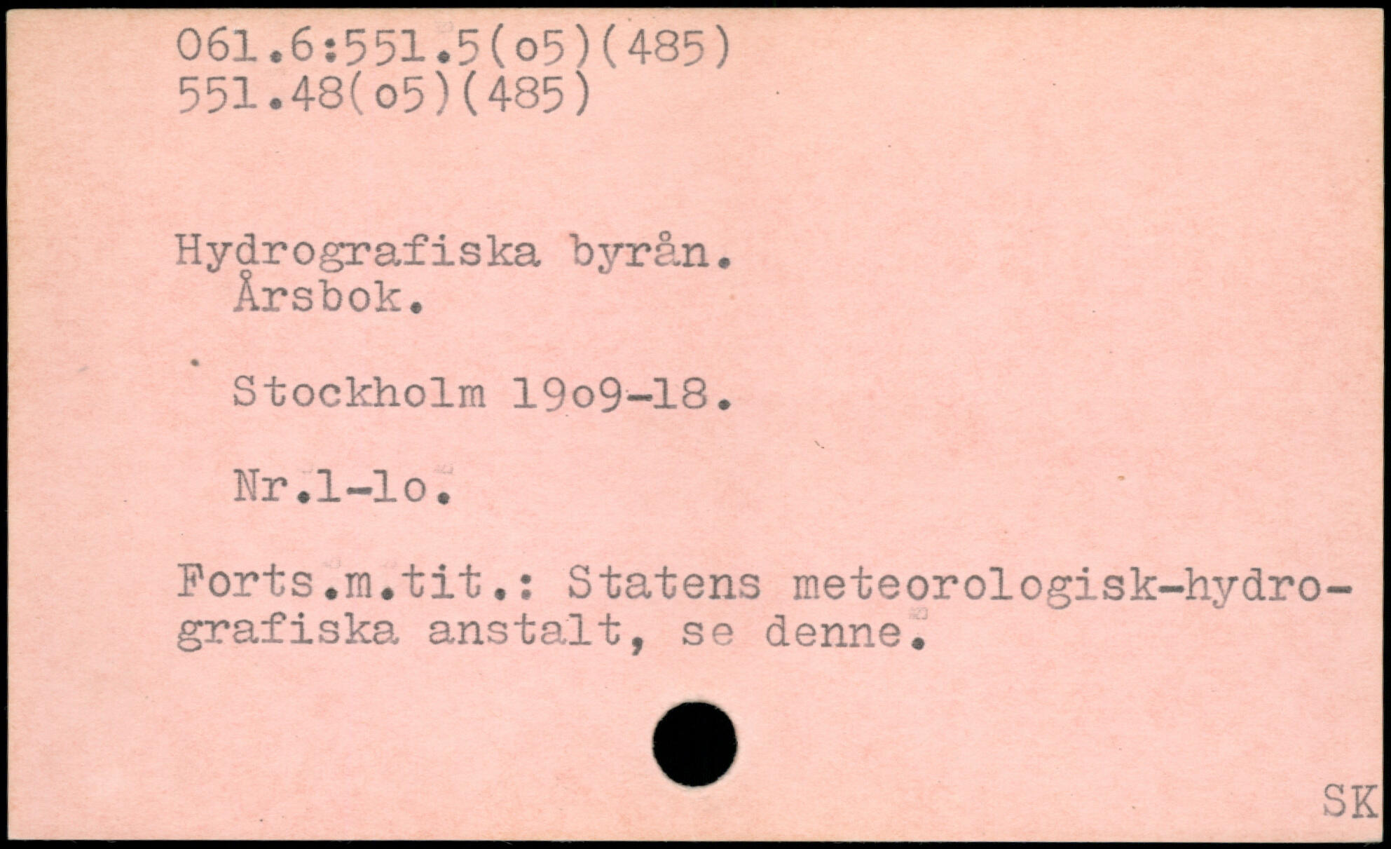 Hydrografiska byrån. Årsbok. Stockholm 19o9-18. Nr.l-lo. Ports.m.tit.: Statens meteorologisk-hydro-grafiska anstalt, se denne.