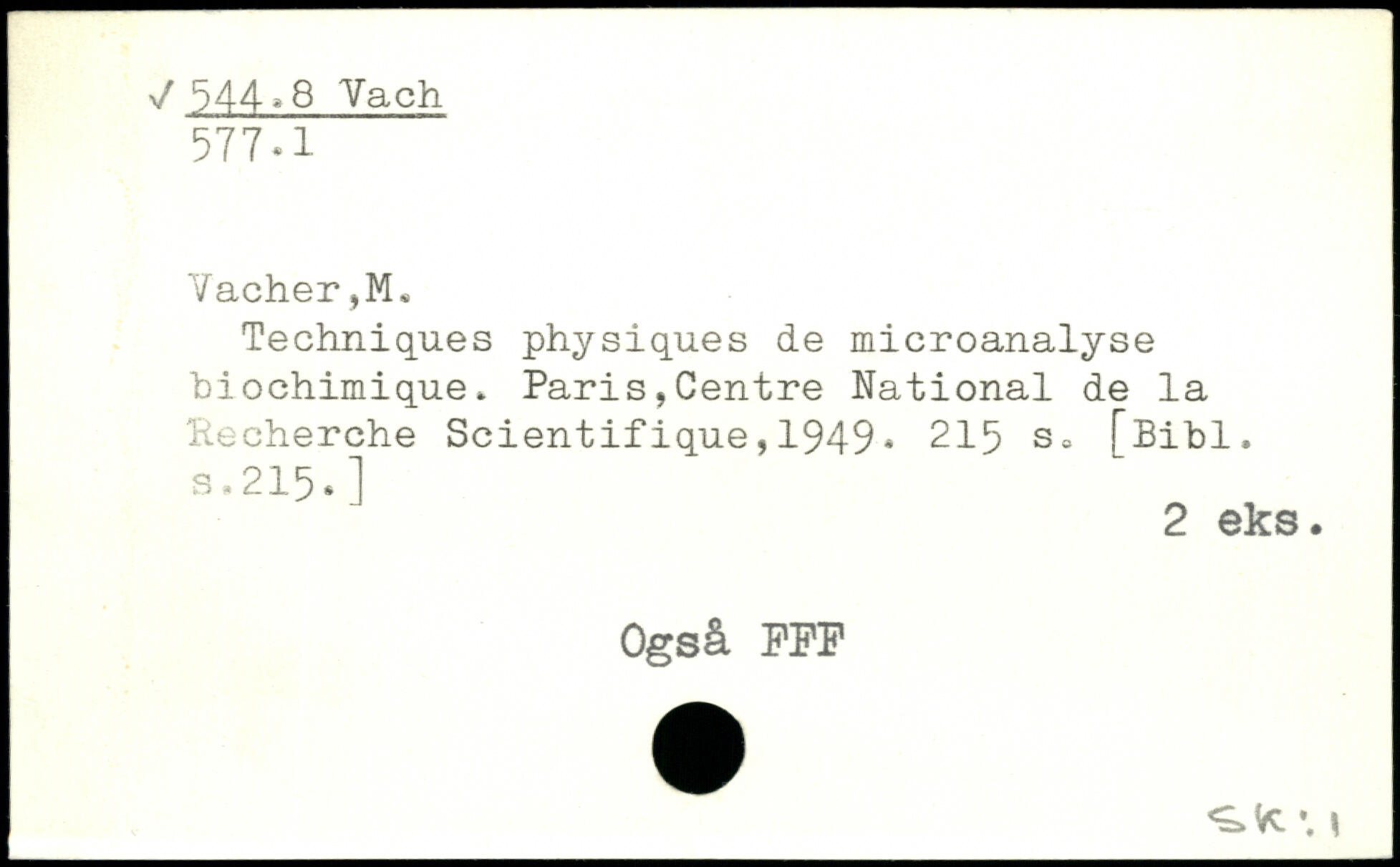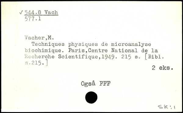 Techniques physiques de microanalyse biochimique, Paris,Centre National de la Recherche Scientifique,1949-
