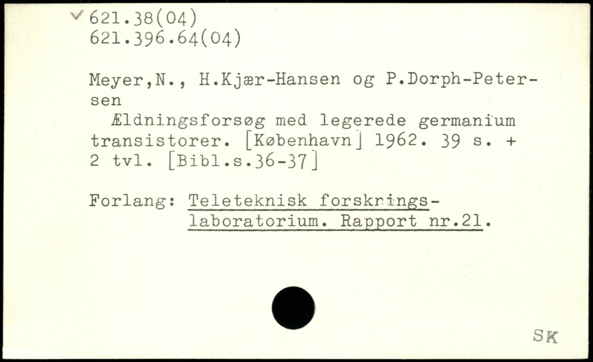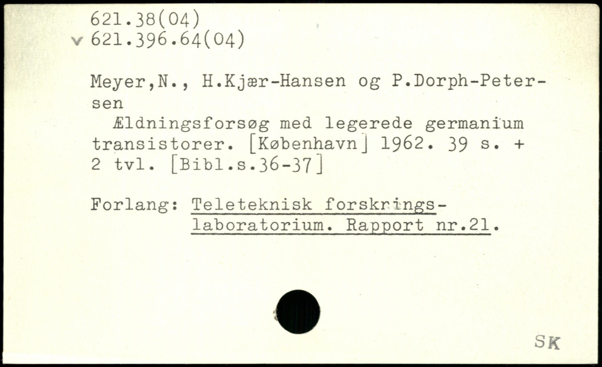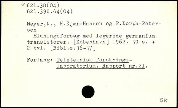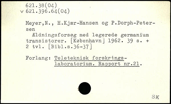 Meyer,N., H.Kjær-Hansen og P.Dorph-Peter-sen Ældningsforsøg med legerede germanium transistorer.