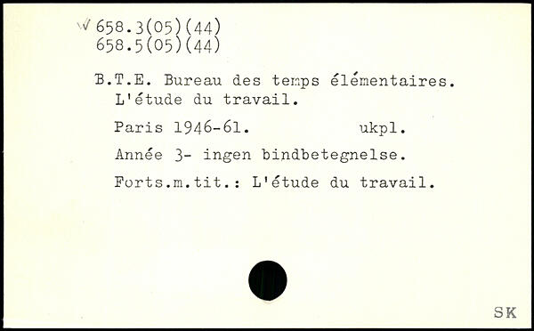 B.T.E. Bureau des temps élémentaires. L’étude du travail. Paris 194é-6l. ukpl. Année 3- ingen bindbetegnelse. Forts.m.tit.ï L’étude du travail.