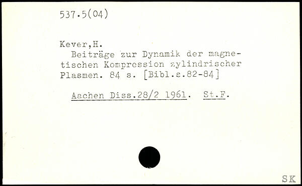 Beiträge zur Dynamik der magnetischen Kompression zylindrischer Plasmen.