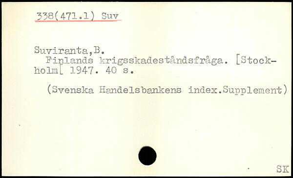 Finlands krigsskadeståndsfråga. [Stockholm [ 1947.