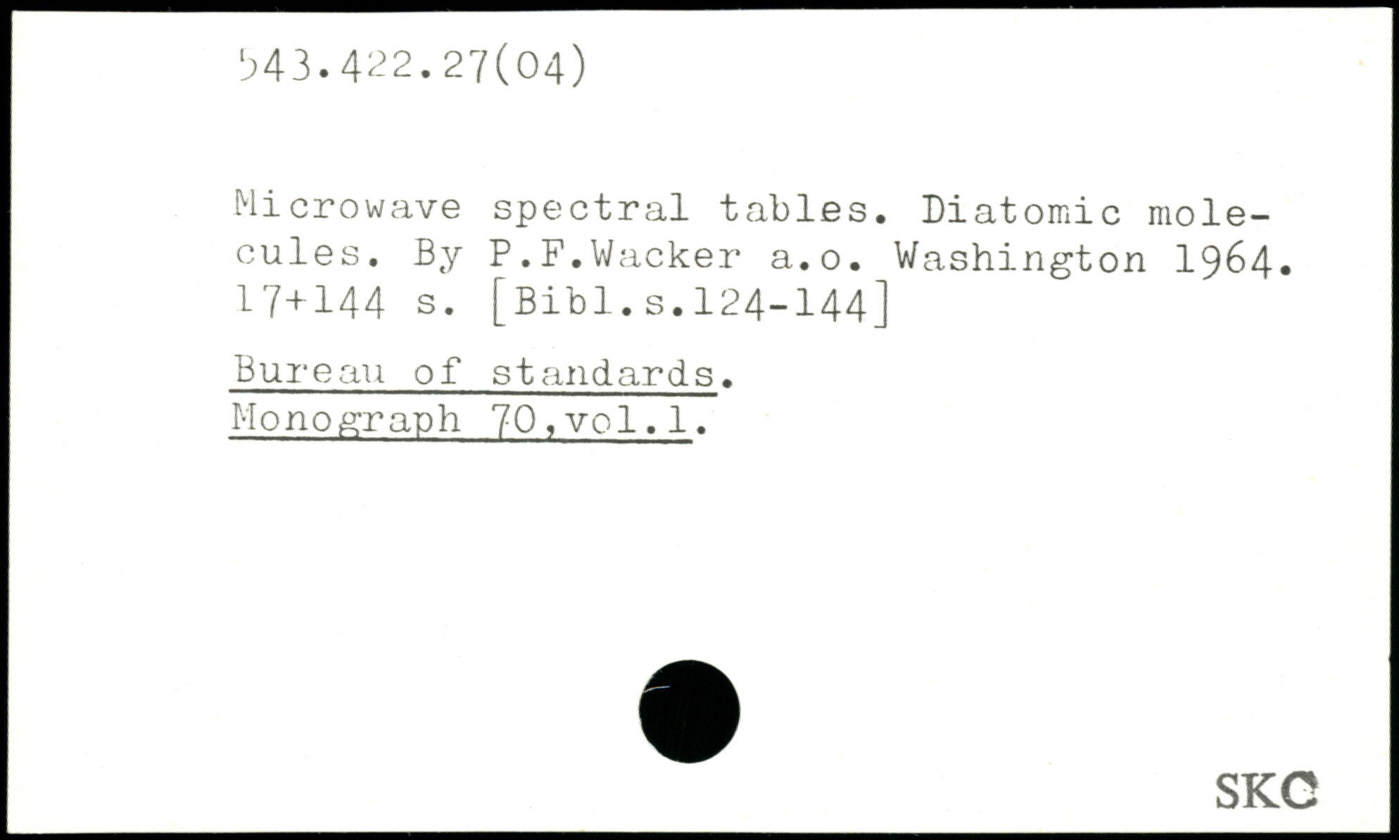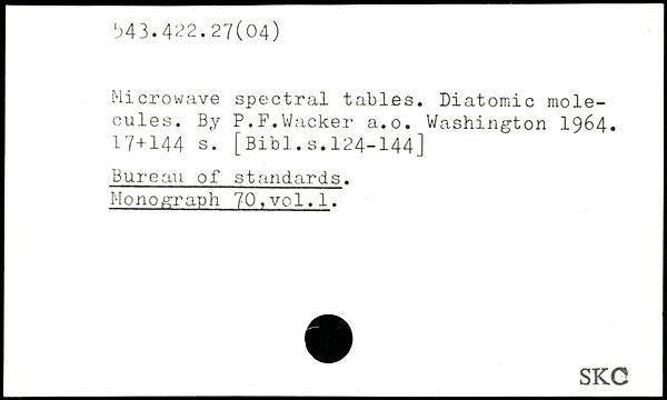 Microwave spectral tables. Diatomic molecules. By P.F.Wacker a.o.