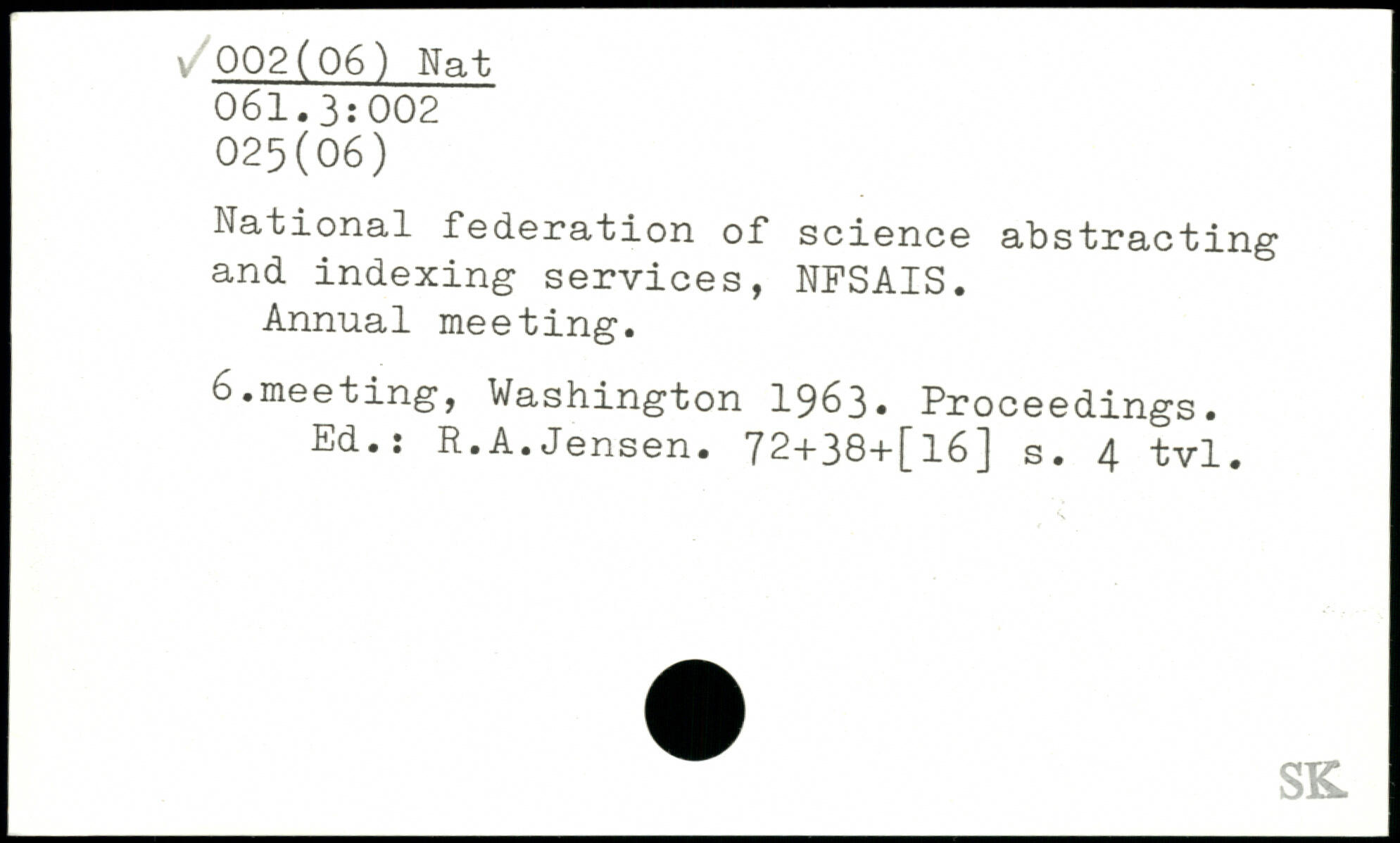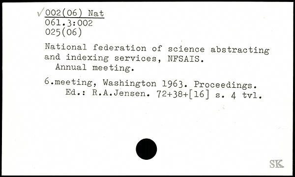 National federation of science abstracting and indexing services, NFSAIS. Annual meeting. 6.meeting