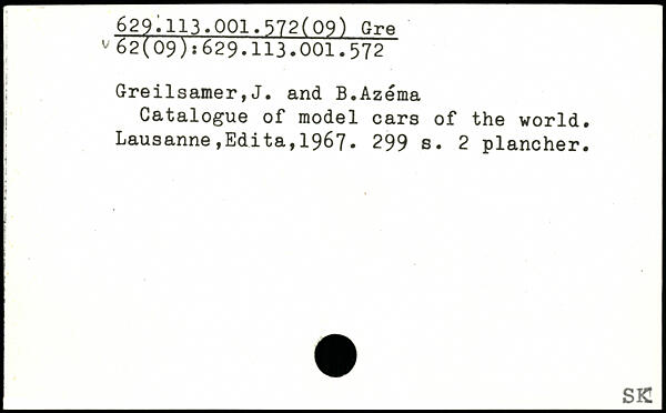 ; Greilsamer,J. and B.Azema j Catalogue of model cars of the world.